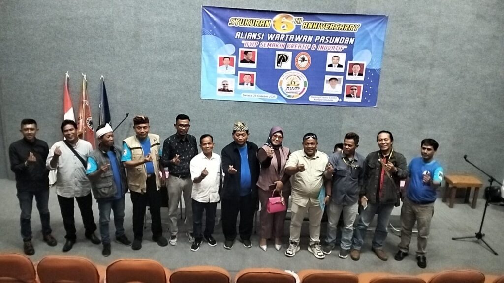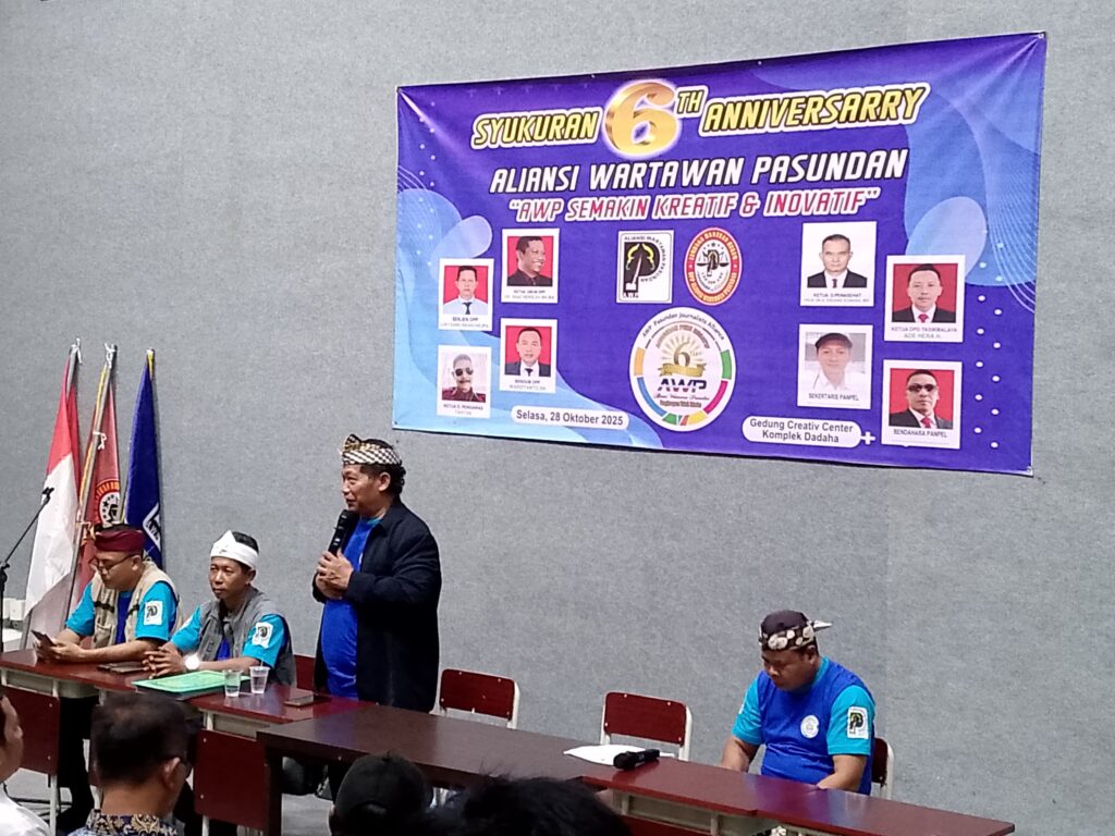 Kota Tasikmalaya, (MAJELIS PERS). Dalam semangat memperkuat eksistensi dan kreativitas insan pers, Aliansi Wartawan Pasundan (AWP) menggelar Syukuran 6 Tahun Anniversary yang berlangsung meriah di Gedung Creative Center (GCC) Dadaha), Kota Tasikmalaya, Selasa (28/10/2025). Mengusung tema “AWP Semakin Kreatif & Inovatif,” acara dibuka dengan tarian tunggal tradisional budaya Sunda, yang menggambarkan kearifan lokal dan semangat kebersamaan dalam dunia jurnalistik. Perayaan ini dihadiri langsung oleh Ketua Umum AWP, Dr. Heri Susanto Boaz, S.H., M.H., M.A., bersama jajaran pengurus pusat dan daerah. Dalam momen penuh semangat itu, Ketua Umum AWP menyerukan yel-yel yang menggema di seluruh ruangan,“AWP! Kuat, Sehat, Bahagia!”