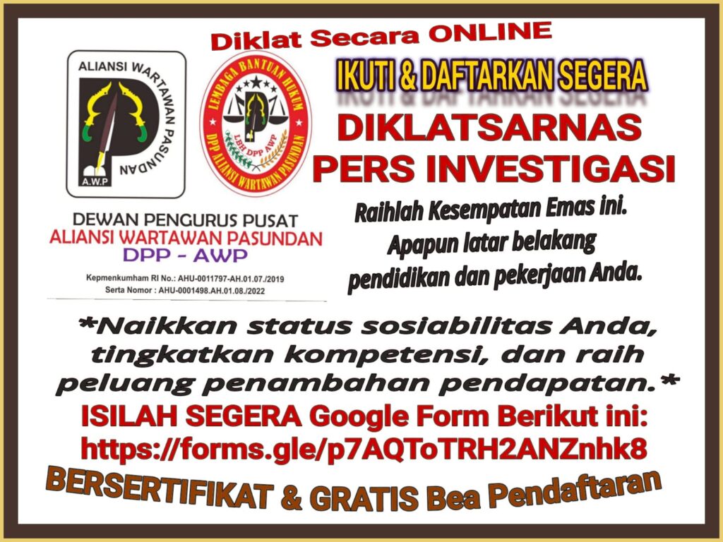 MEDIA MAJELIS PERS Diterbitkan oleh : DPP AWPN & DPP AWP (ALIANSI WARTAWAN PASUNDAN) Badan Hukum : Kep.Men-Kum-HAM RI No.:AHU-0011797_AH.01.07./2019 & No.:AHU-0001498.AH.01.08./2022. Akta Notaris : No. 69. Tgl 27 November 2019 – Diperbarui No.76 Tgl. 27 Juli 2022. Terbit berdasarkan Undang-Undang No 40 Tahun: 1999 Tentang Pers.